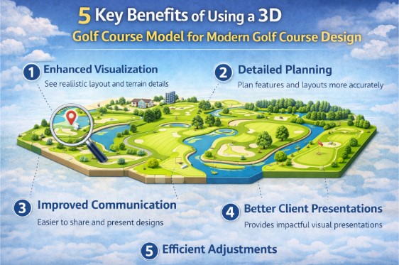 Modern golf course design requires clearness, flexibility, and precision; a 3D golf course model provides all three by helping designers realize concepts through terrain understanding, refining their strategies, clarifying their communications, and constructing more confidently.Â